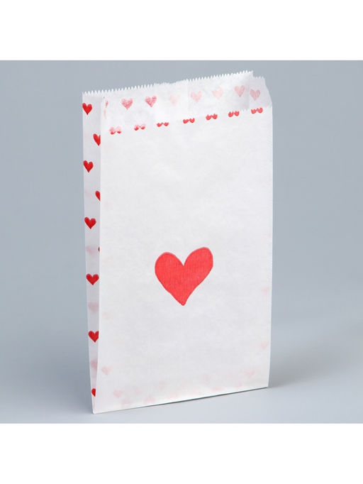 • Цена за 50 шт. Пакет бумажный фасовочный, упаковка, белый, «Сердца» 20×11×4 см без окна