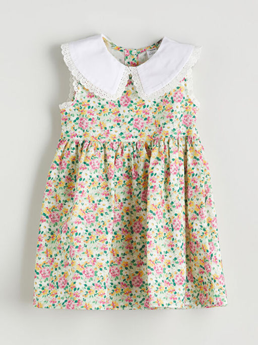 • Keten Kar???ml? ?i?ekli K?z ?ocuk Elbise