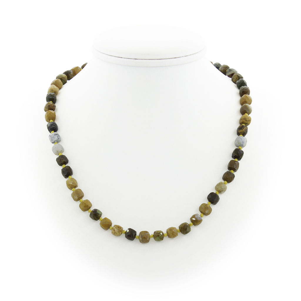 • Яшма темная, граненые кубики 7мм, бусы "Текта", длина 50+4см