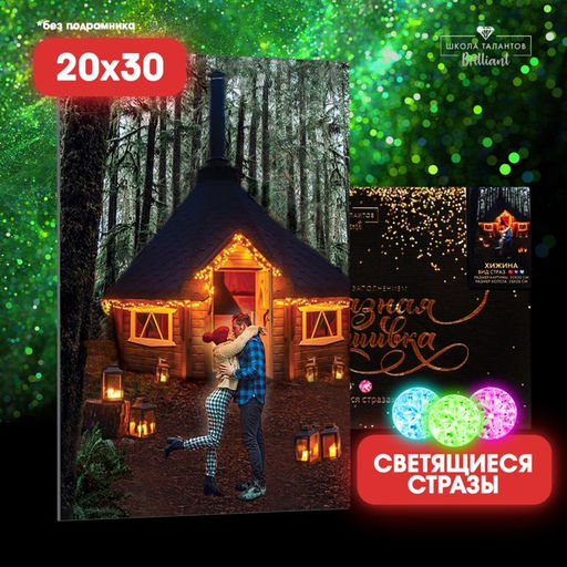 • Алмазная мозаика с полным заполнением со светящимися стразами на холсте «Хижина», 20×30 см