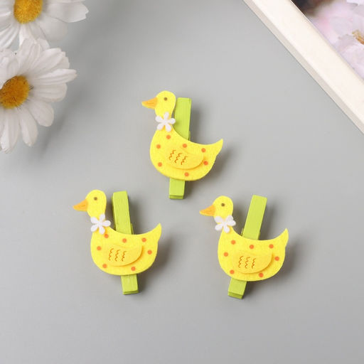 Декор для творчества дерево, фетр Прищепка. Уточка с цветочком, набор 3 шт., 1.8?4?4.9 см