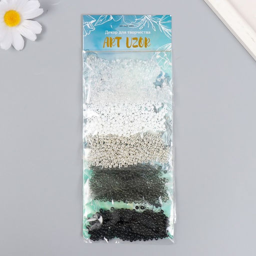 • Цена за 2 шт. Бисер круглый «Чёрный, белый и серебро», 5 цветов × 10 г