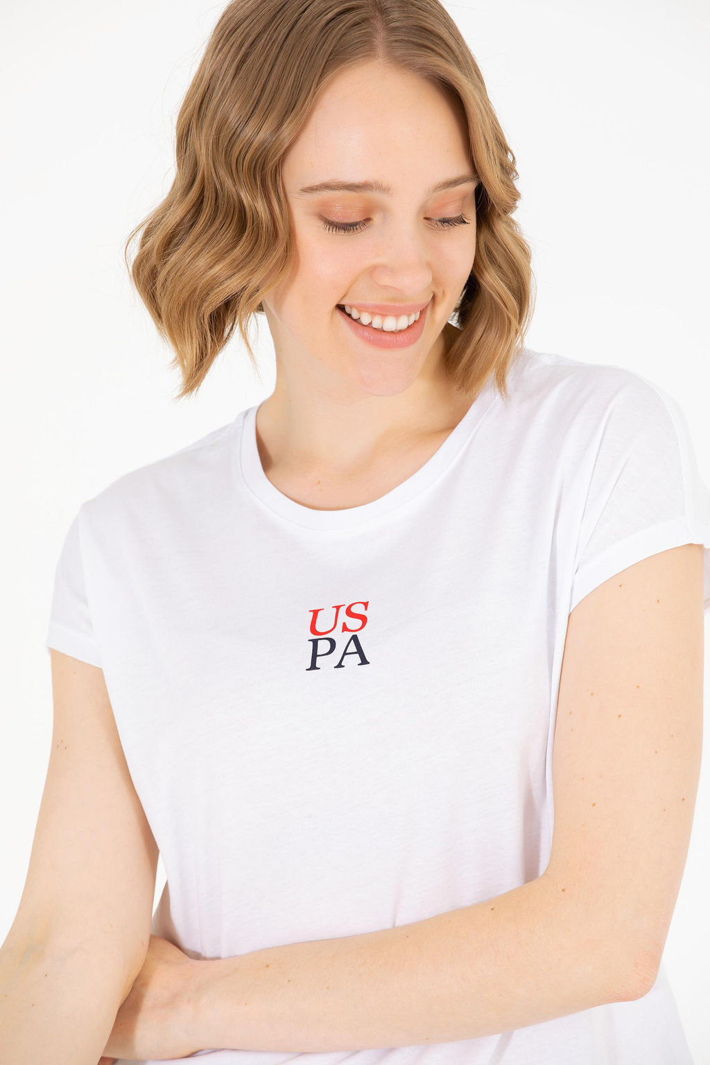 Kad_n Beyaz Bisiklet Yaka Ti__rt
