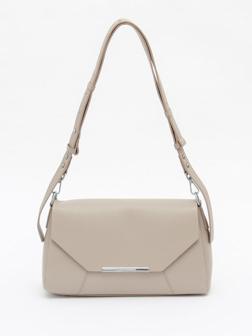 Базовая модель, выполнена из натуральной кожи. Декорирована пряжкой на клапане. Дополнена серебристой фурнитурой. Данная модель закрывается на клапан. Каркас полужесткий. Носится на плече или через плечо. Встроенный ремень регулируется по длине. На дне предусмотрены ножки.