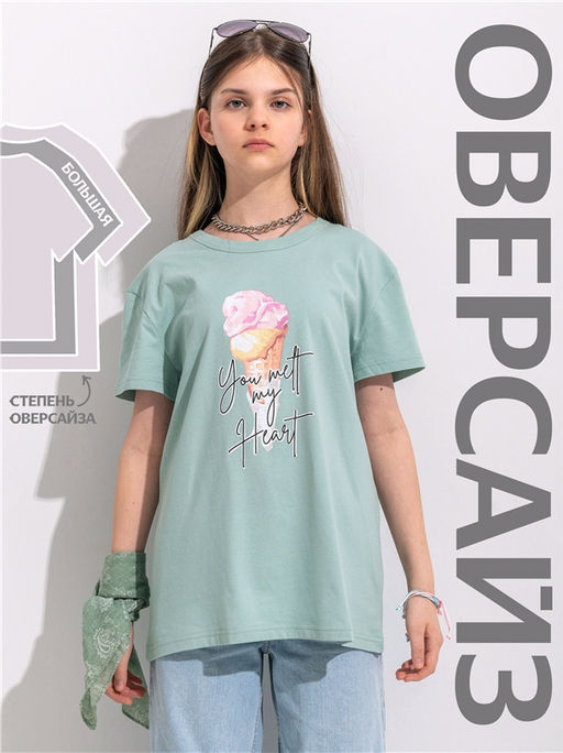 футболка,хлопок 100%,кулир / хлопок 100%,светло-зеленый249 / - / Рожок мороженого / - / - / -,Оверсайз футболка для девочки выполнена из кулира - легкого хлопкового полотна. Изделие прямого покроя с короткими рукавами и округлым вырезом горловины, украшено дизайнерским принтом. Уход: только машинная стирка (руками не стирать!) при температуре 40 градусов, без предварительного замачивания. Изделия с печатью перед стиркой необходимо вывернуть на изнаночную сторону.