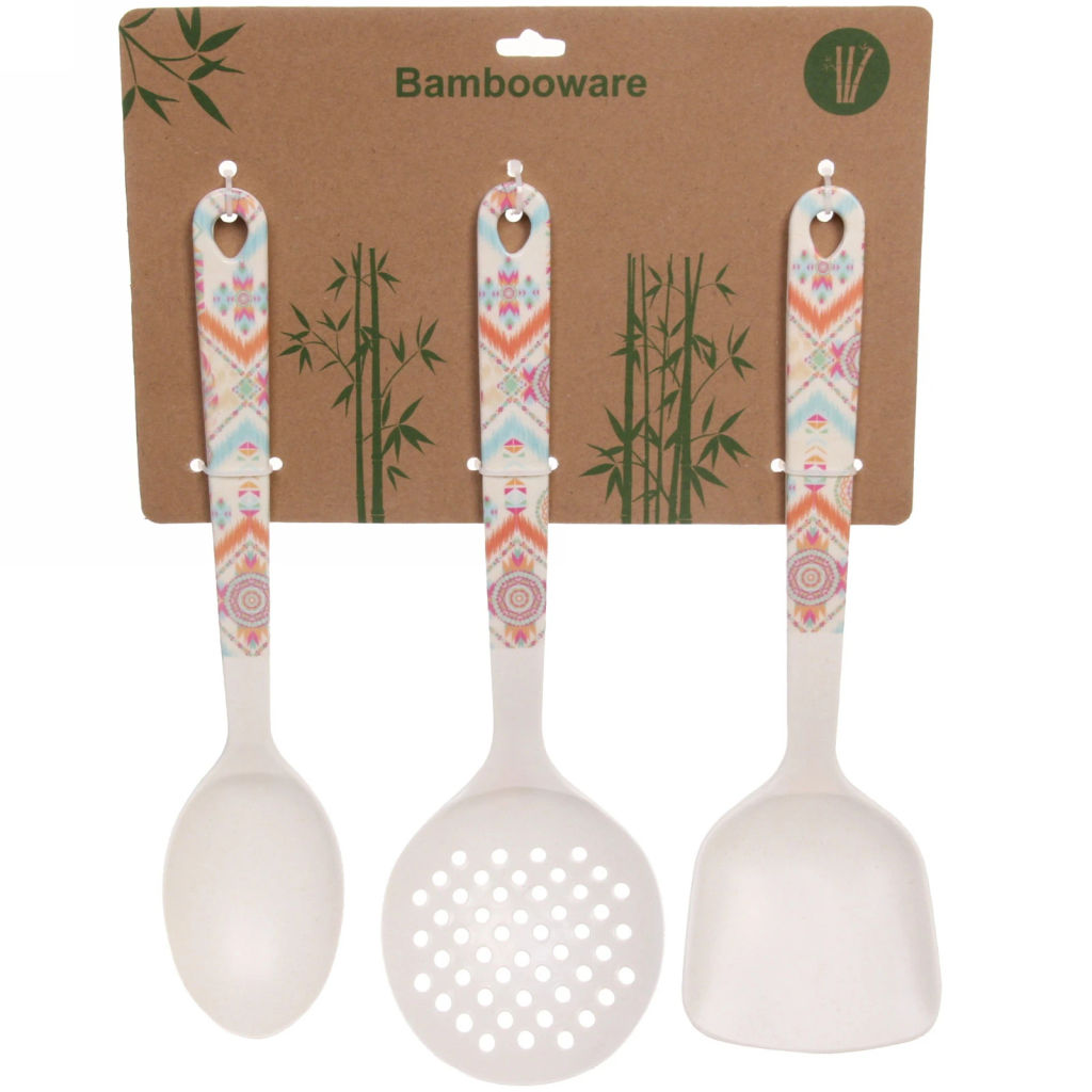 • Набор кухонных принадлежностей 3шт бамбуковых "Eco Life" (Ложка, Шумовка, Лопатка), орнамент