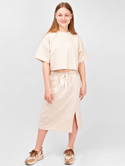 Юбка для девочки Соль&Перец в стиле спорт-шик. Юбка прямого кроя на широкой резинке с кулиской и боковыми карманами, выполнена из трикотажа - футер 2-х нитка.