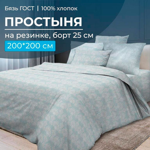 Артикул: Простыня на резинке 200*200 см, бязь ГОСТ, борт 25 см (Бельведер грифин)