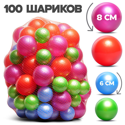 • Шарики диам. 6 и 8 см (100 шт. в ассортименте в сетке)