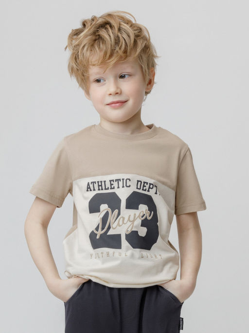 Футболка для мальчика из высококачественного трикотажного полотна. Оригинальный принт выполнен из стойких текстильных красителей. Изделие сохраняет цвет и форму после многократных стирок. Все трикотажные полотна производятся в соответствии с нормами швейцарского сертификата ЭкоТекс.­