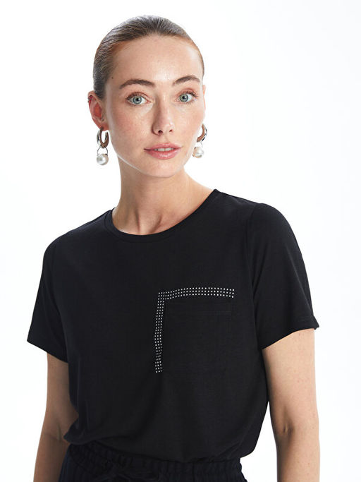 Bisiklet Yaka Parlak Ta?l? K?sa Kollu Kad?n Ti??rt