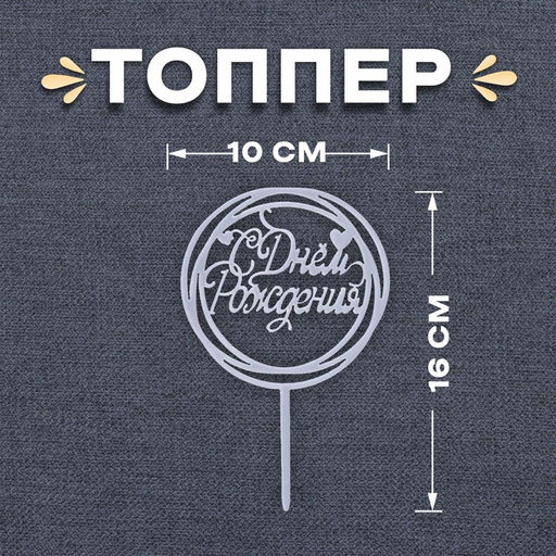 • Цена за 2 шт. Топпер для торта «С Днём Рождения», серебряный