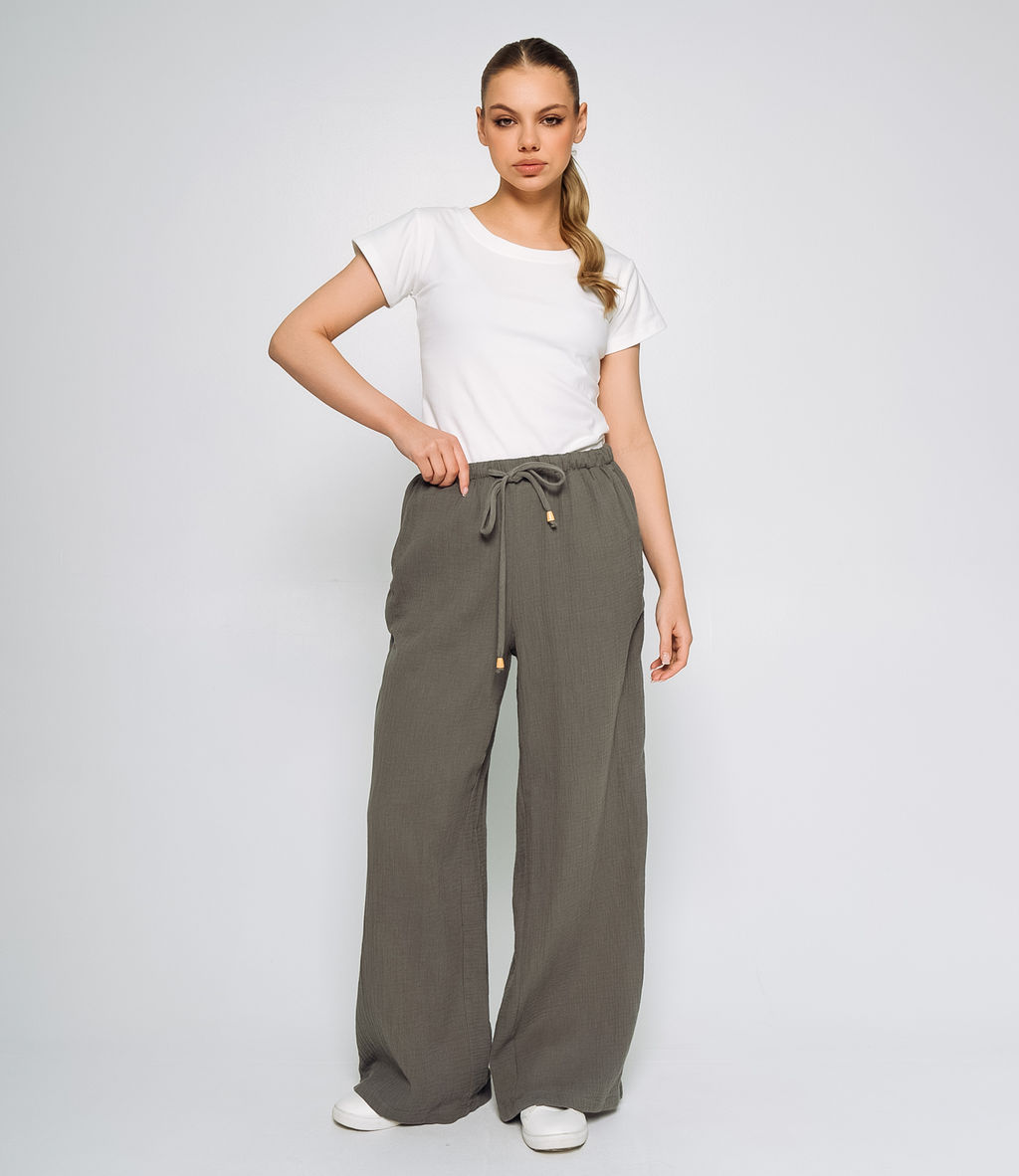 Брюки это незаменимая часть гардероба, которая подчеркивает женственность и уникальность каждой представительницы прекрасного пола. Эти брюки имеют свободный и расслабленный стиль, идеально подходящий для теплой погоды и повседневной носки. Эти брюки легко комбинируются с различными элементами одежды, что позволяет создавать стильные образы для любого случая. Производитель знает, как разработать стильные и комфортные решения, которые удовлетворяют потребности самых требовательных клиентов. Для пошива использована ткань 100% хлопок, которая характеризуется отличным качеством. Даже после множества стирок эти брюки сохранят свою первоначальную привлекательность и форму. Обратите внимание на цвет и текстуру ткани они гармонично сочетаются с различными цветами и образами. Для удобства мы предоставили таблицу размеров на нашем сайте, чтобы ваши покупатели могли точно подобрать подходящий размер. Предложенная нами цена является доступной и выгодной для оптовых покупателей, что делает эти брюки отличным дополнением к ассортименту вашего магазина. Подарите своим клиентам удовольствие носить стильные и комфортные брюки, которые подойдут для любых летних дней! Рост модели: 168, параметры: 89-63-90.­