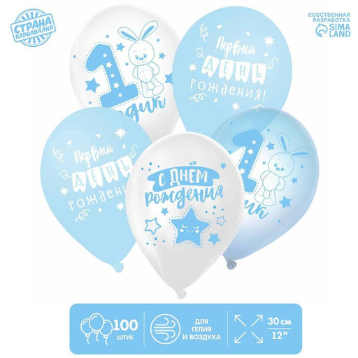 • Воздушные шары латексные 12" «1 годик», 100 шт.