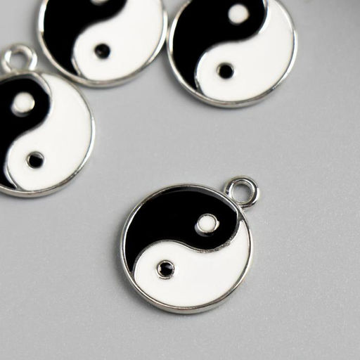 Цена за 2 шт. Декор для творчества металл, эмаль «Инь-ян», серебро, 2.2×1.8 см