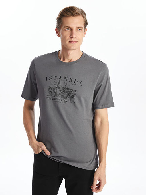 Bisiklet Yaka K?sa Kollu ?stanbul Bask?l? Penye Erkek Ti??rt