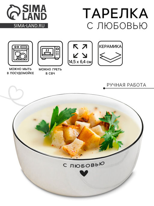• Тарелка суповая керамическая С любовью, 14.5?6.4 см, 600 мл, ручная работа