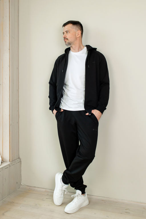 Верх — толстовка на молнии с капюшоном. Рукав реглан создаёт мягкую линию плеч и обеспечивает свободу движений. Боковые карманы на молнии практичны и аккуратно вписаны в дизайн. Манжеты на рукавах и по низу изделия помогают сохранить форму и обеспечивают комфортную посадку.Особое внимание привлекает — лаконичная вставка с тиснёным логотипом, добавляющая модели оригинальности и подчёркивающая современный характер.