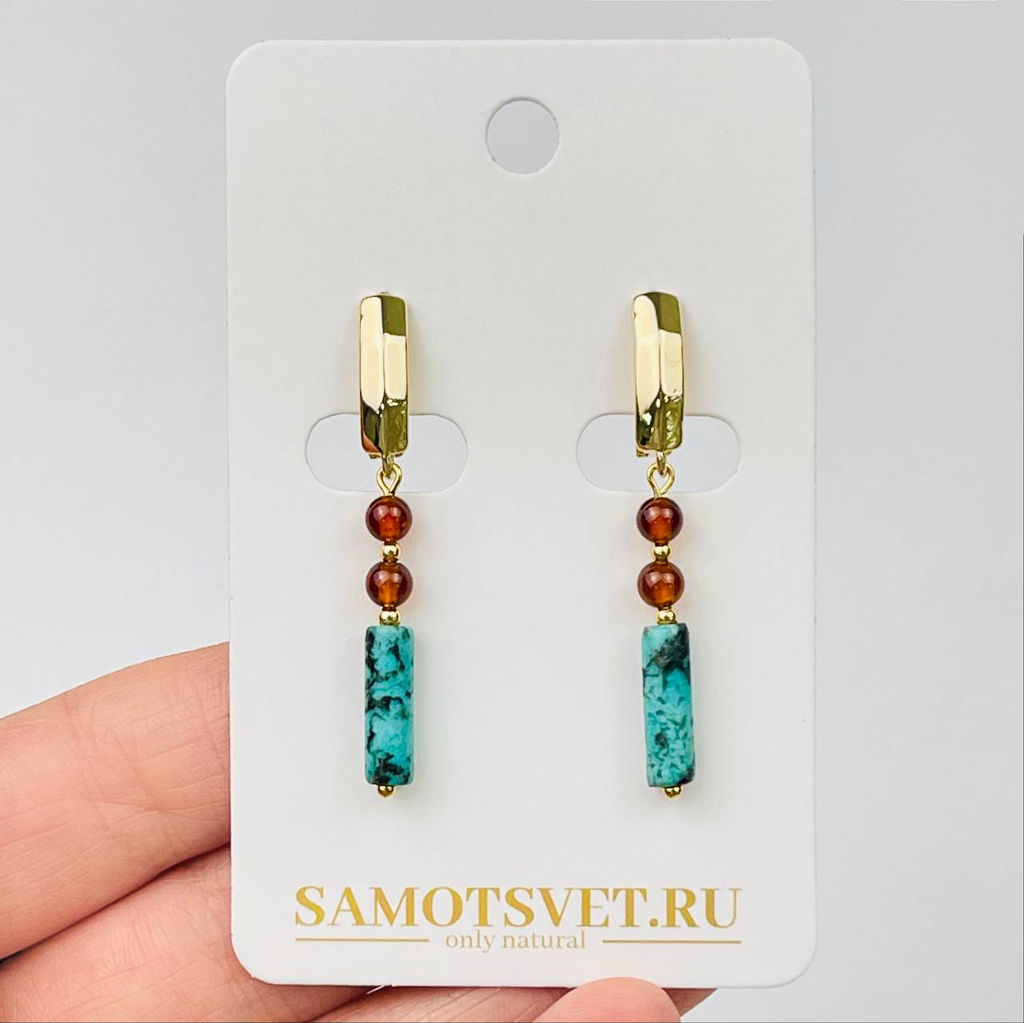 • Серьги из Граната "Спессартин" и Хризоколлы