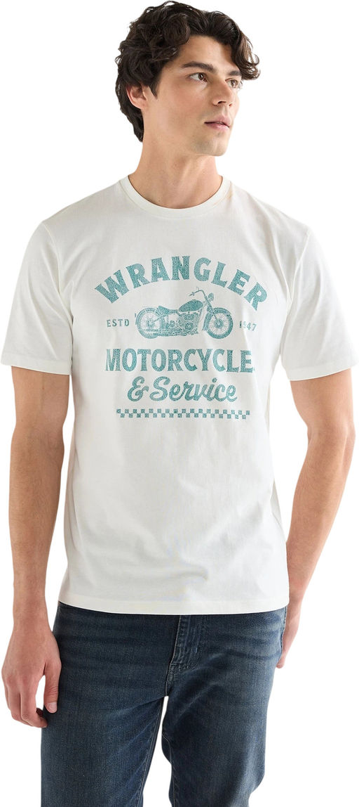 Футболка Americana классического кроя — незаменимый элемент гардероба. Эта винтажная футболка белого цвета — дань уважения наследию Wrangler. Она украшена оригинальным графическим рисунком на груди. Футболка имеет удобный классический крой и круглый вырез. 100% хлопок.