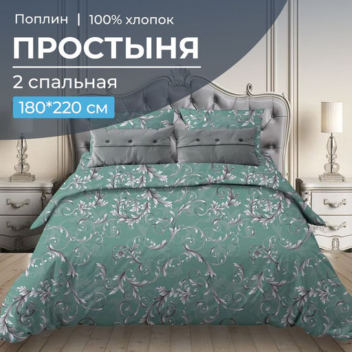 Артикул: Простыня 2-спальная, поплин (Валенсия, бирюзово-зеленый)