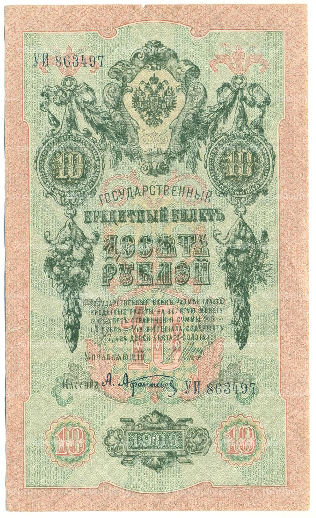 • Банкнота 10 рублей 1909 года Шипов / Афанасьев