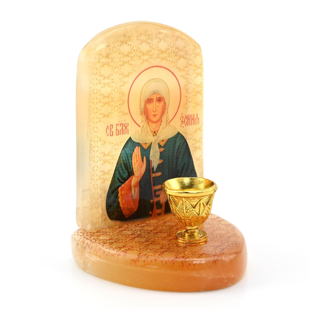 • Икона из селенита с подсвечником "Ксения Петербургская" 55*50*75мм Радуга камня