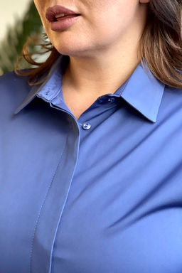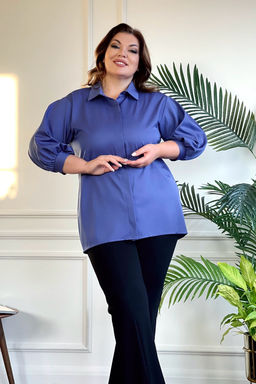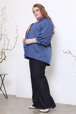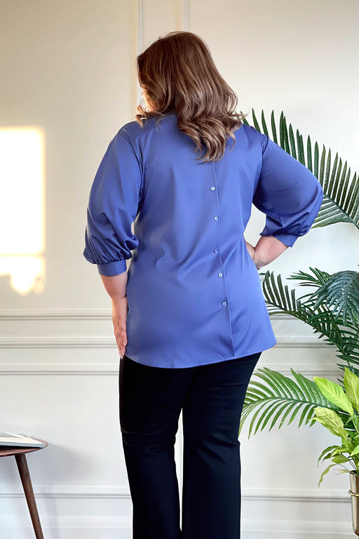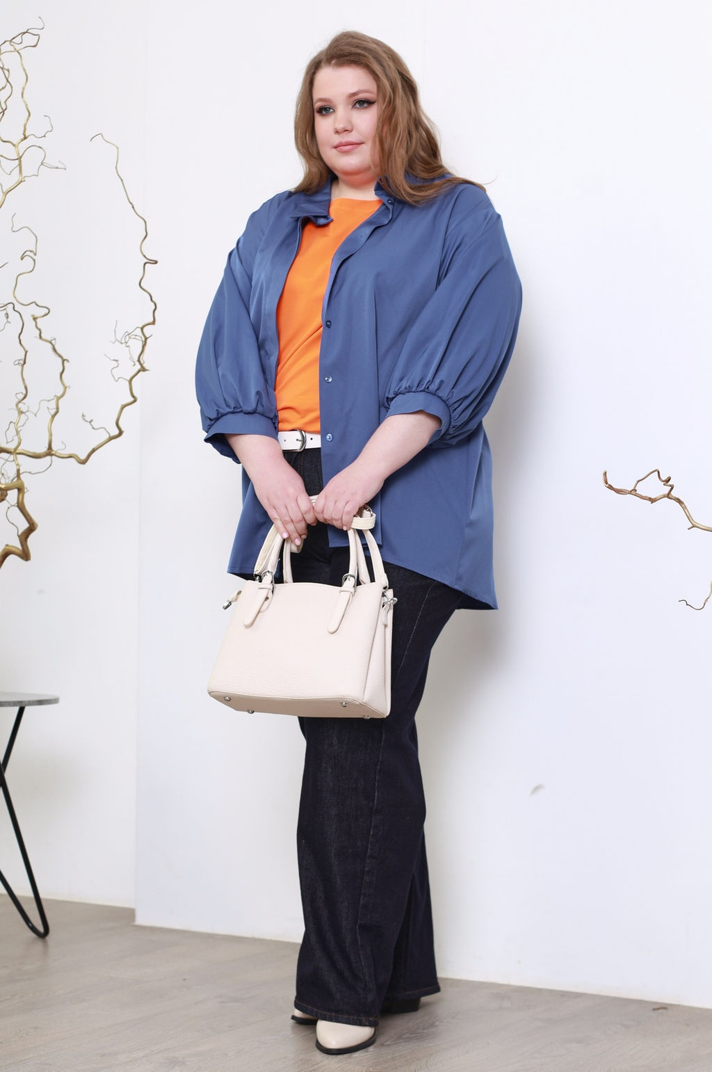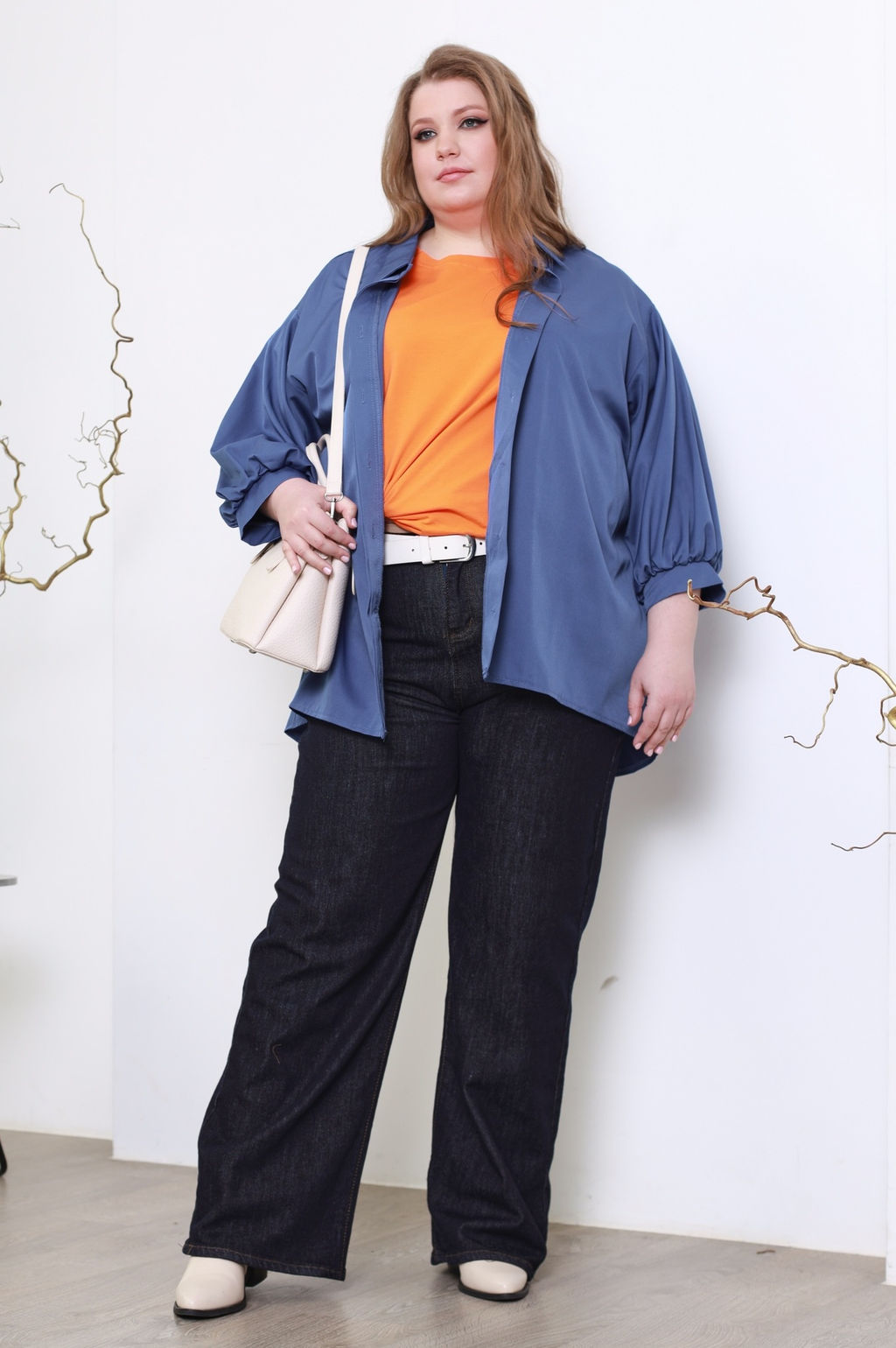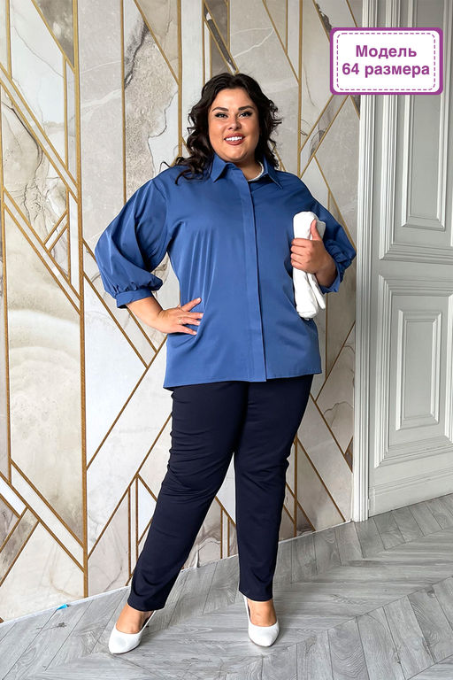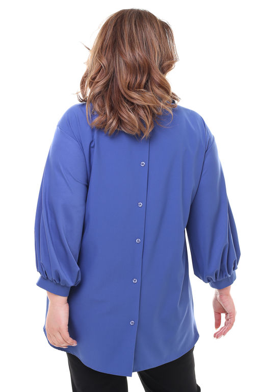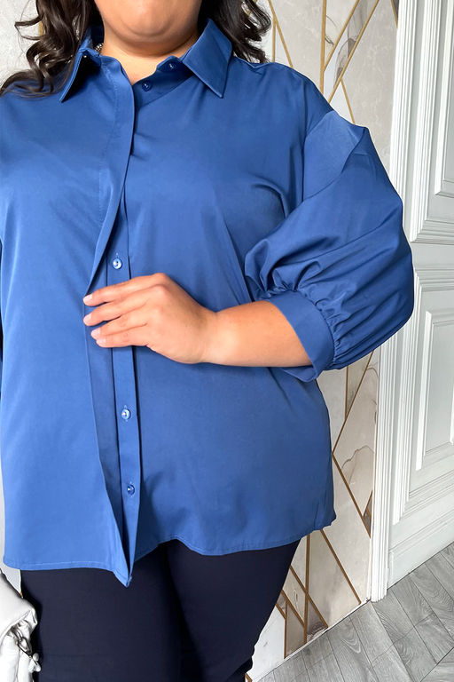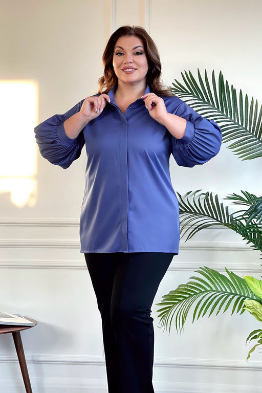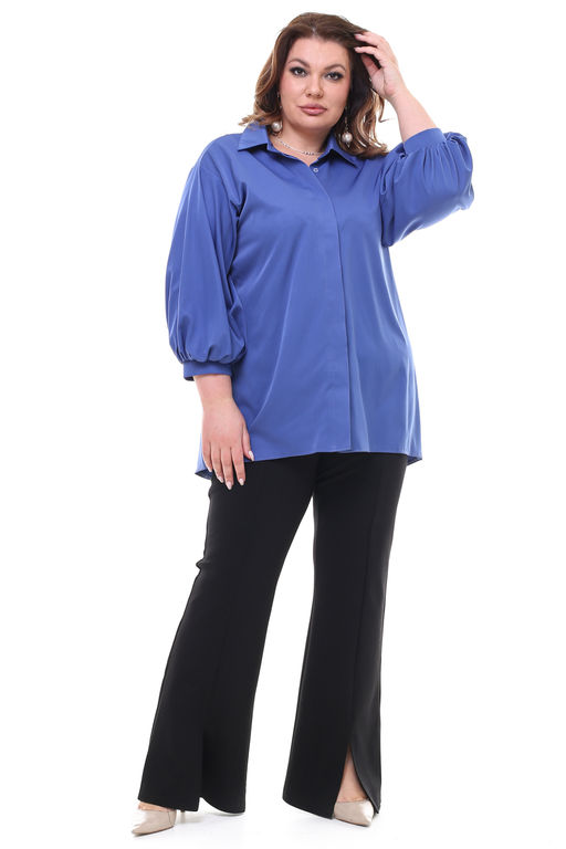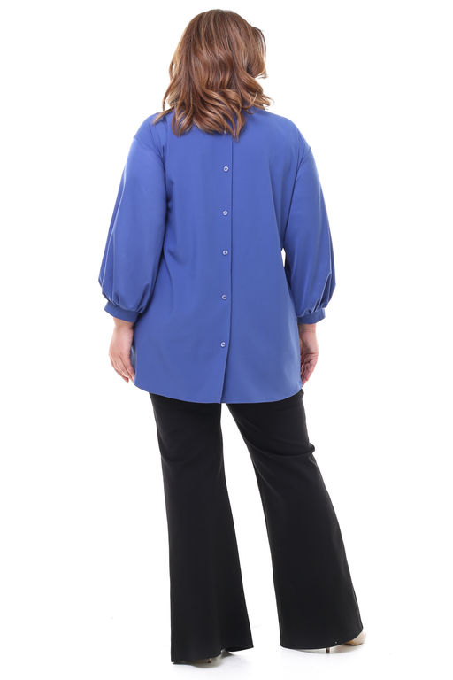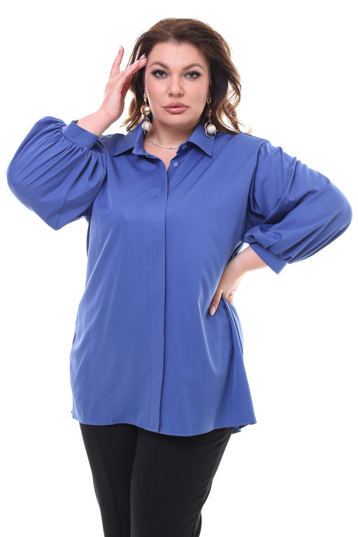 Удлиненная рубашка свободного кроя - идеальный вариант для женщин, ценящих простоту и элегантность. Модель привлекает оригинальным дизайном. Рубашка застегивается спереди на скрытые пуговки под планку. Имеет классический отложной воротник. Изюминкой модели являются широкие приспущенные рукава-фонарики длиной 7/8, которые по низу присобраны на манжету. Удлиненная спинка декорирована планкой с изящными пуговками, что добавляет модели нарядности. Свободный крой искусно обыгрывает силуэт, а мягкий, приятный телу материал подарит комфорт на весь день. Отлично подходит для комбинирования с брюками и легинсами.