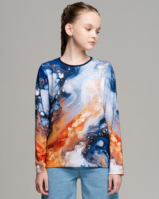 Лонгслив для девочки свободного кроя необходимая вещь в детском гардеробе для создания расслабленных образов. Он не сковывает движения, ребёнок чувствует себя комфортно. Кофта для девочки покрыта авторским принтом от наших художников по всей поверхности. Благодаря технике сублимационной печати краски надёжно впечатываются в волокна ткани и сохраняют яркость цвета на протяжении нескольких сезонов. Сочные принты не завянут после стирок, можете не переживать. Трикотаж для девочек подойдёт для повседневных прогулок, садика и даже для дома.