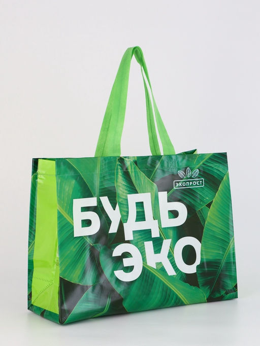 • Цена за 10 шт. Сумка-пакет из нетканого материала с ламинацией, зелёный, эко, 36×46×16 см