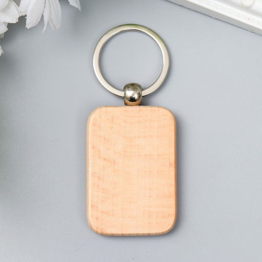 Цена за 12 шт. Деревянный брелок для ключей на кольце под нанесение «Прямоугольник», закруглённые углы, 5×3.5×0.7 см
