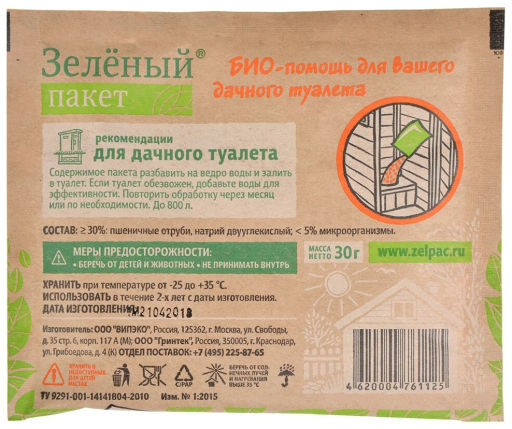 • ЗЕЛЕНЫЙ ПАКЕТ биоактиватор д/дачного туалета 30гр
