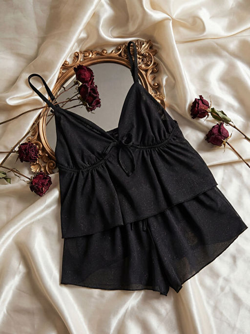 V Yaka Kad?n ?ortlu Pijama Tak?m?