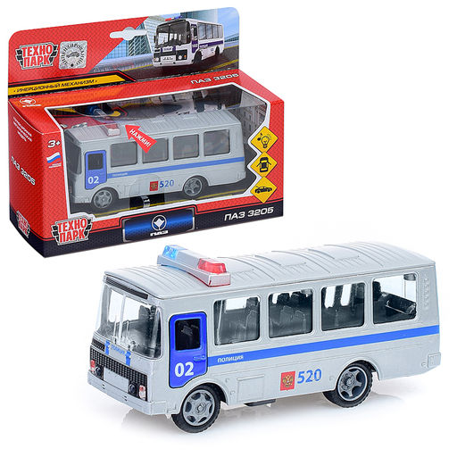 • Машина металл ПАЗ 3205 14 см, (свет-звук, дв., багажник) инерц., в коробке