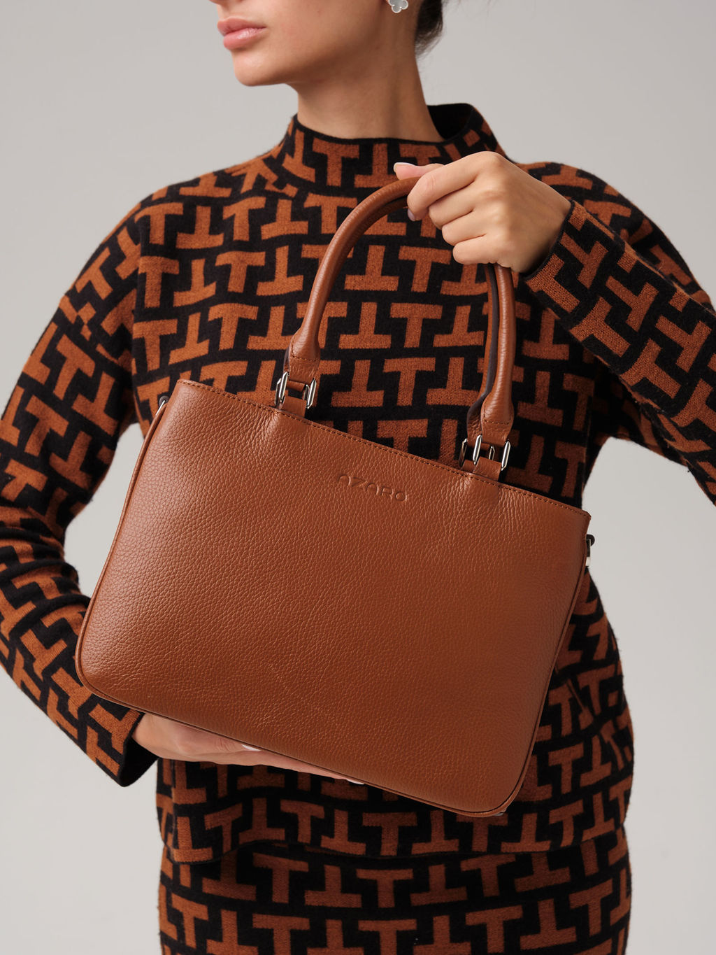 Детали: натуральная кожа, 3 внутренних отделения на хлопковой водонепроницаемой подкладке на молнии и магнитных кнопках, 2 внутренних открытых кармана между отделениями, 1 внутренний закрытый карман на молнии, 2 ручки, 1 съемный короткий ремень, кожаный пуллер на молнии.­