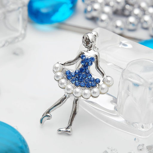 • Цена за 2 шт. Брошь «Балеринка», бело-сапфировая в серебре