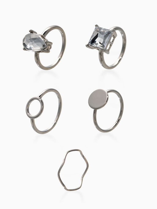 • Набор колец 5 шт "Новый стиль" кристалл, размер МИКС, цвет белый в серебре