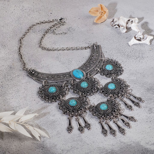 Колье «Гестия» четыре яруса, голубое в чернёном серебре, 35 см
