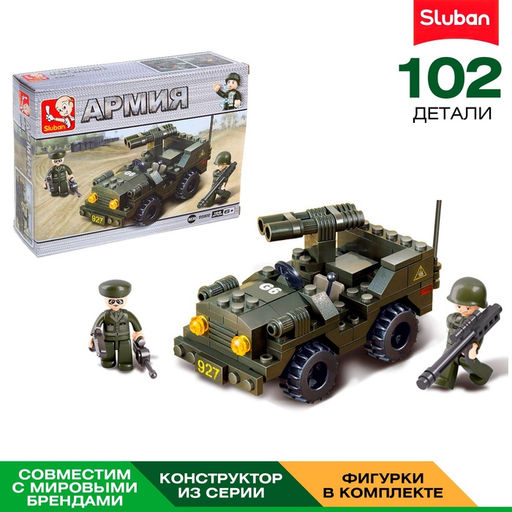 Конструктор является одной из самых любимых и популярных во все времена игрушек у детей самого разного возраста. Конструируя, малыш создает своими руками новые чудесные вещи и от этого чувствует себя взрослым, а еще развивает логическое мышление, творчество, мелкую моторику, воображение и умение концентрироваться.Конструкторы Sluban - это большое разнообразие серий: армия, пожарная бригада, строители, патруль, город. Типовые детали конструктора совместимы с другими наборами. Вид транспорта: Внедорожник/Джип. Для кого: Для мальчика. Возраст: От 6 лет. Количество минифигур: 2. Среднее время сборки, мин: 60. Количество элементов: 102. Тематика праздника: 23 Февраля. Тематика конструктора: Военные. Тип механизма: Без механизма. Уровень сложности: Средний. Бесплатная доставка: Да.
