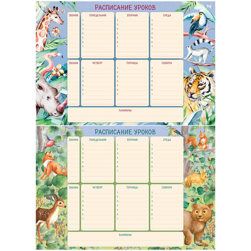 • Цена за 2 шт. Расписание уроков с расписанием звонков А3 "Пиши-стирай. Животные" (367884, "BG")