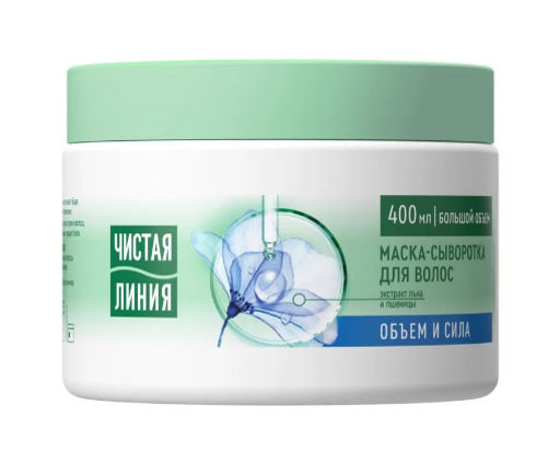 Маска-сыворотка для волос Чистая линия Объем и Сила с экстрактами льна и пшеницы это эффективное уходовое средство для тонких локонов, лишенных объема.