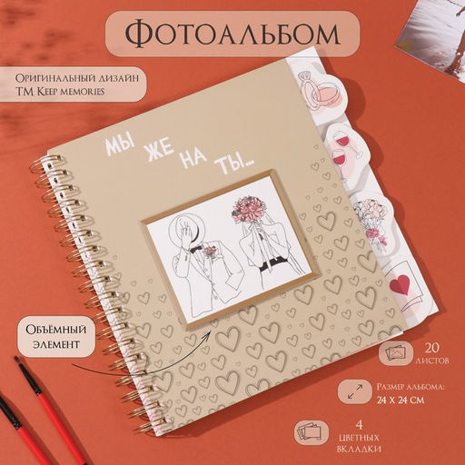 • Фотоальбом на спирали 20 листов Мы женаты, объёмный элемент и 4 вкладки, 24?24 см