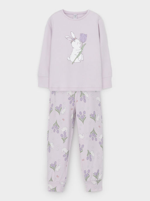 • К 1541/нежная сирень,зайчики и тюльпаны пижама