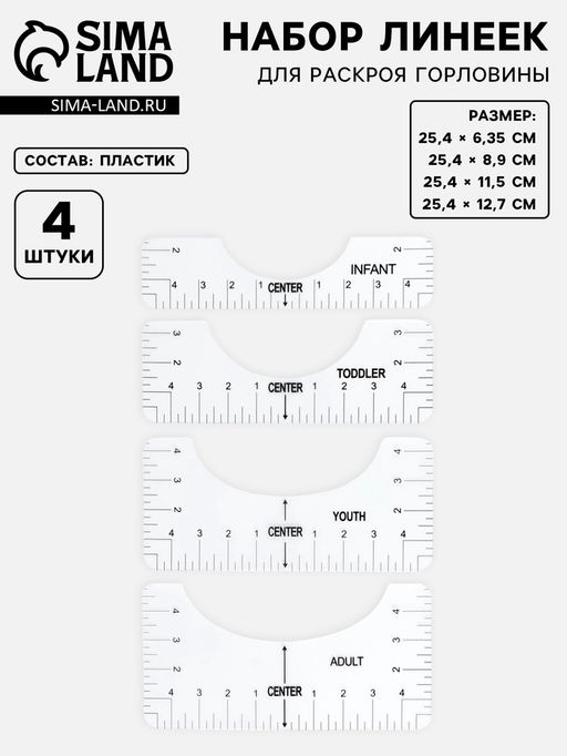• Набор линеек для раскроя горловины, 4 шт., 25.4×6.35/8.9/11.5/12.7 см
