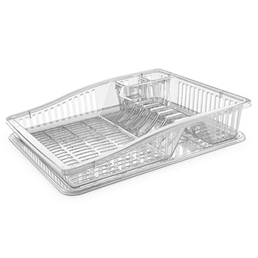 • Сушилка настольная для посуды пластмассовая "Степ малая" 38х30х8см, с поддоном, прозрачный (Россия)
