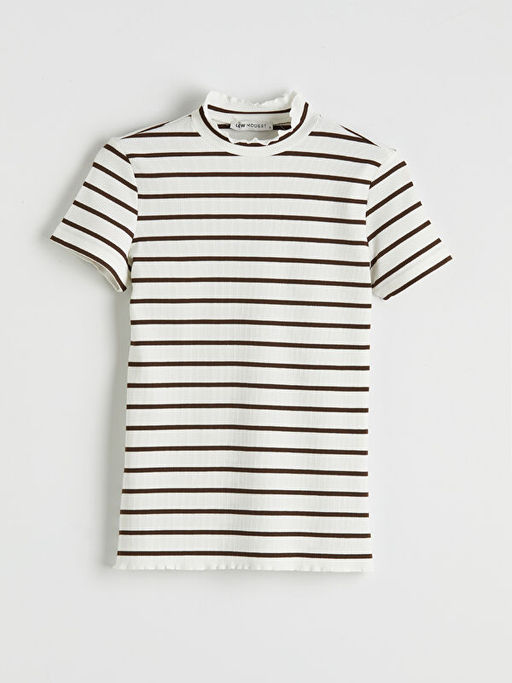 • F?rf?rl? Dik Yaka ?izgili Kad?n Ti??rt