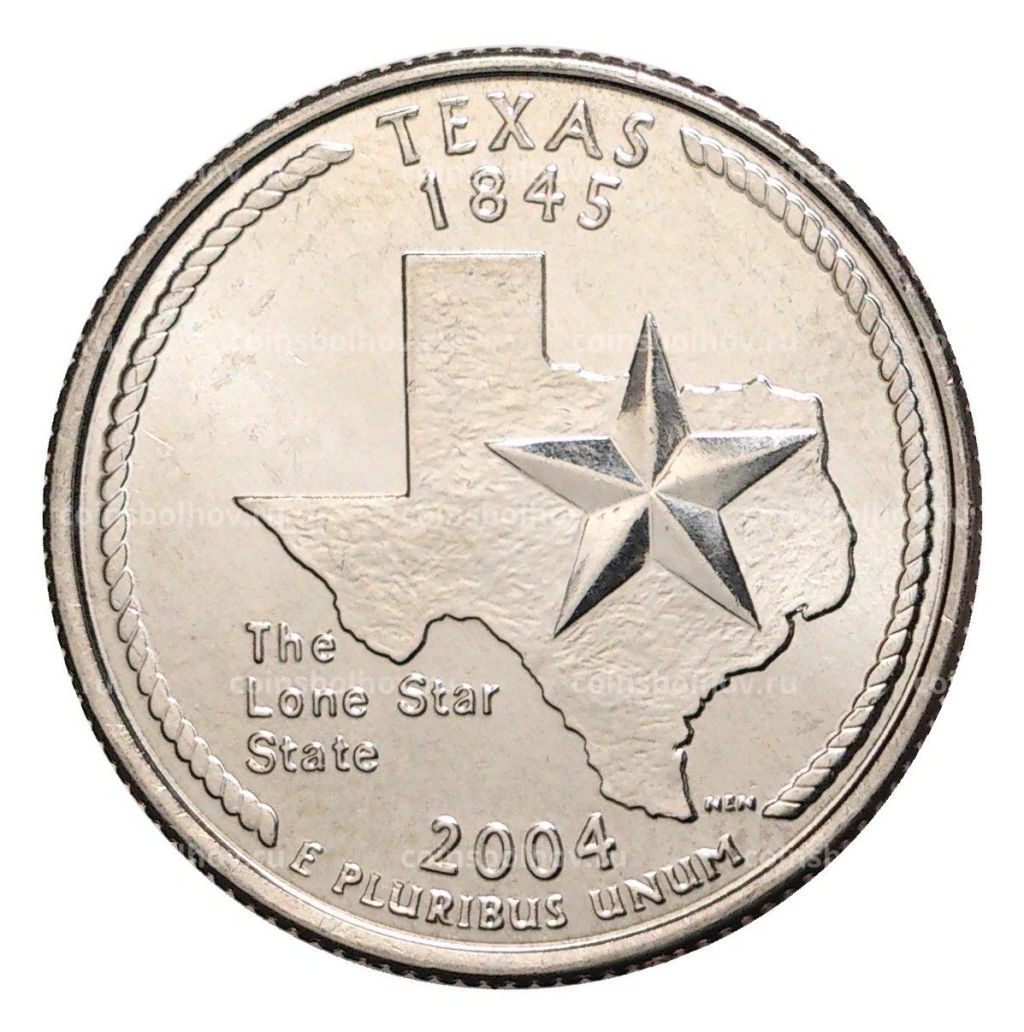• Монета 25 центов (1/4 доллара) 2004 года Р США Штаты и территории  Техас