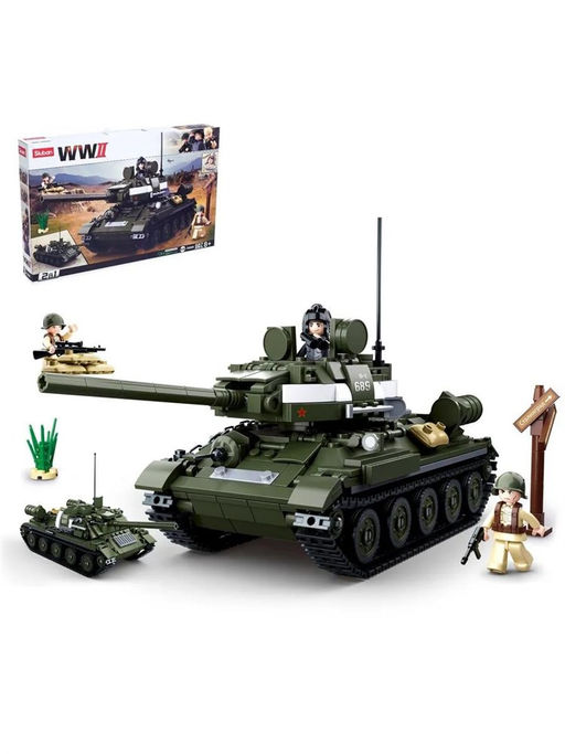 • Конструктор SLUBAN 687 дет. "Танк Т-34 / Самоходная арт.установка СУ-85" 2 варианта сборки (М38-В0689) танкист и 2 солдата, в коробке