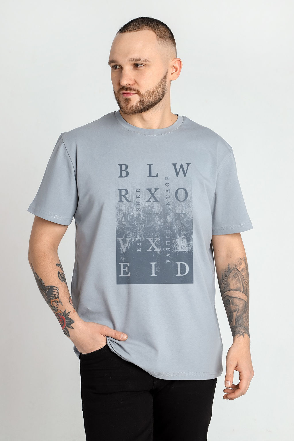 Футболка мужская из гладкокрашеного трикотажного полотна "кулирка" с лайкрой, классическогоь покроя, с коротким втачными рукавами, горловиной овальной формы, обработанной втачной планкой и принтом на полочке, выполненным в технике шелкографии.­