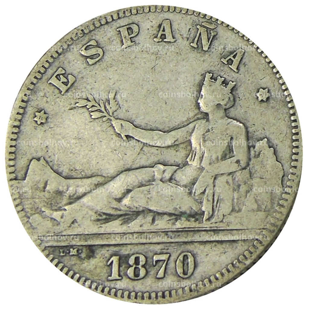 • Монета 2 песеты 1870 года Испания